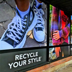 - Design: Our team creates custom vinyl window decals that reflect your brand’s identity.